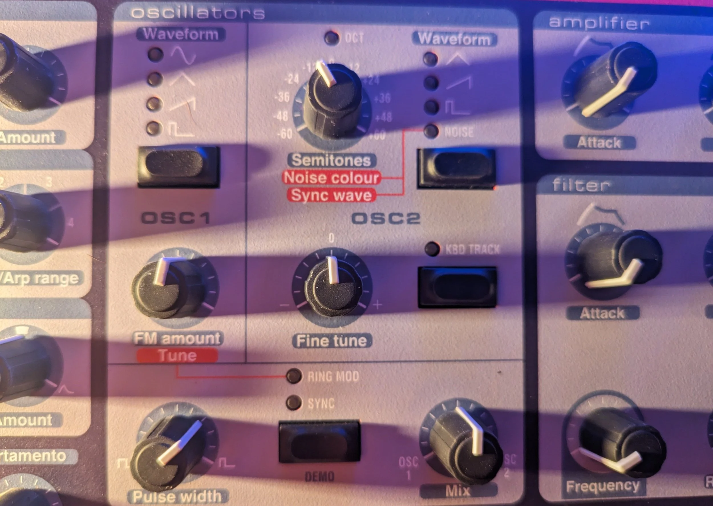 And beyond all those, you are also presented in the Mixer section with a Noise generator, that lets you select between several grades of White Noise, to allow you to dial in exactly how much hiss you want in a sound.